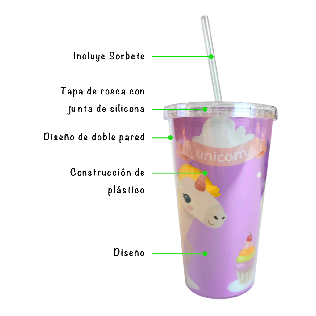 Adquiere ahora el Vaso Plástico 450Ml Tapa Sorbete Unicornio Violeta Por Unidad y transforma cada bebida en una experiencia extraordinaria. ¡No te lo pierdas!