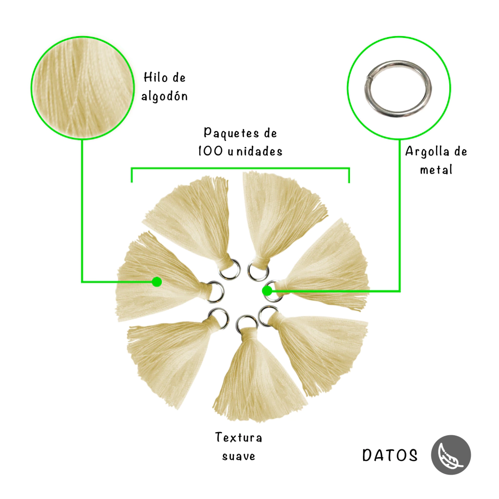 Agrega un toque de elegancia y distinción a tus proyectos con nuestras Borlas de 2.5 cm. Este set incluye 100 unidades, ideales para decorar y embellecer una variedad de artículos.