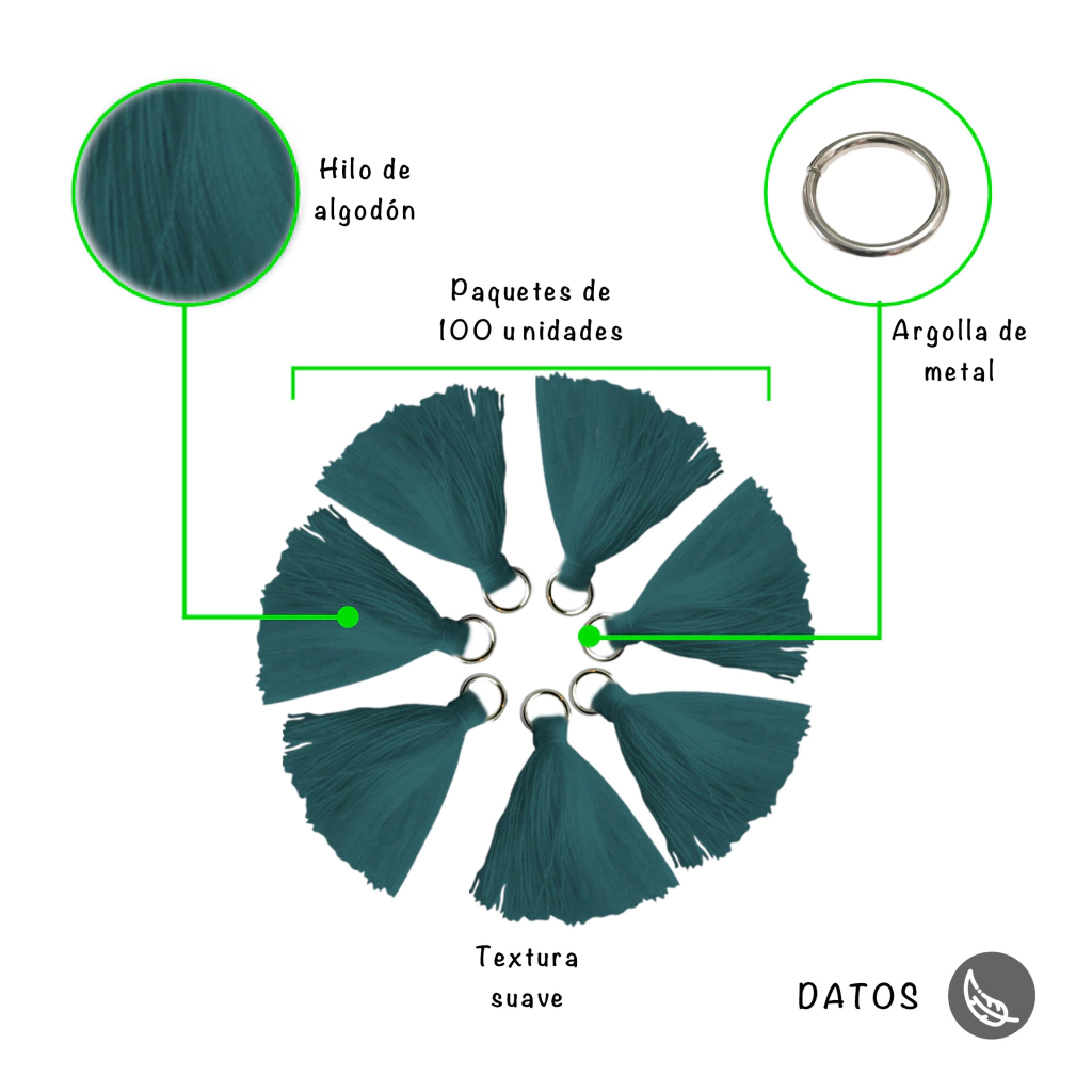 Añade un toque de color y elegancia a tus proyectos con nuestras Borlas de 2.5 cm. Este paquete incluye 100 unidades, perfectas para personalizar y adornar cualquier tipo de evento o manualidad.