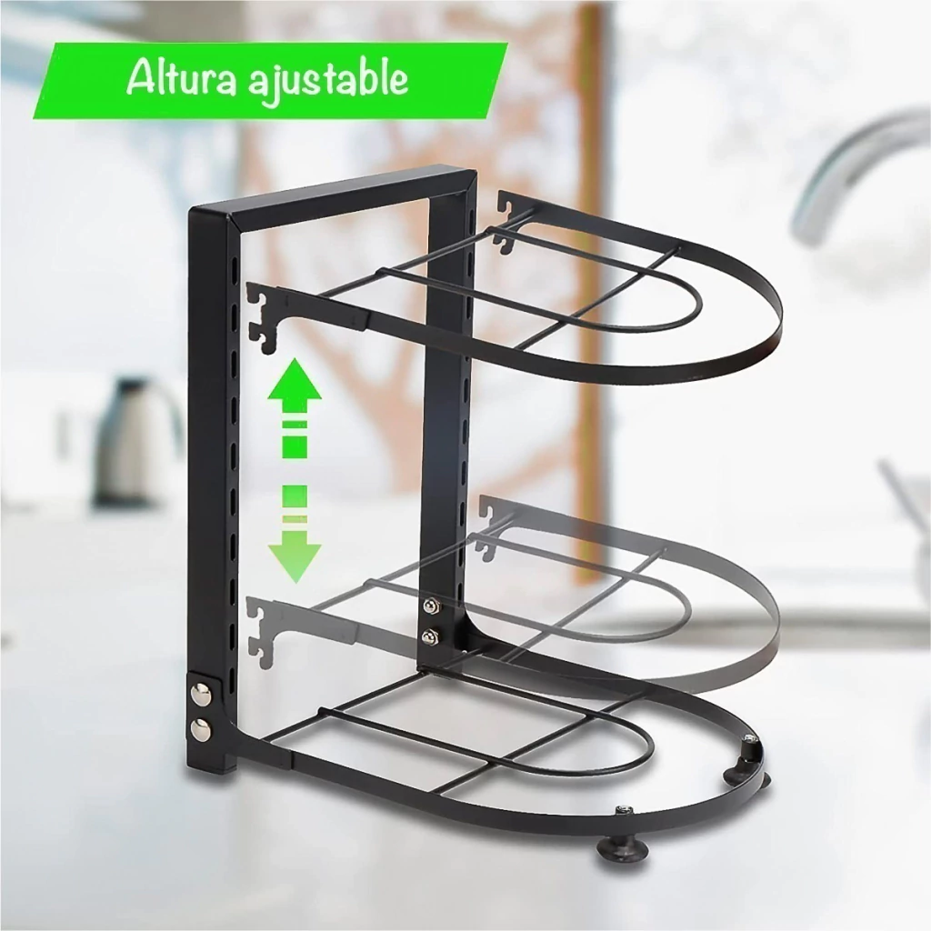 ¡Mantén tu cocina ordenada y funcional! El Organizador de Sartenes es la solución ideal para optimizar el espacio en tus armarios y facilitar el acceso a tus utensilios de cocina más utilizados.