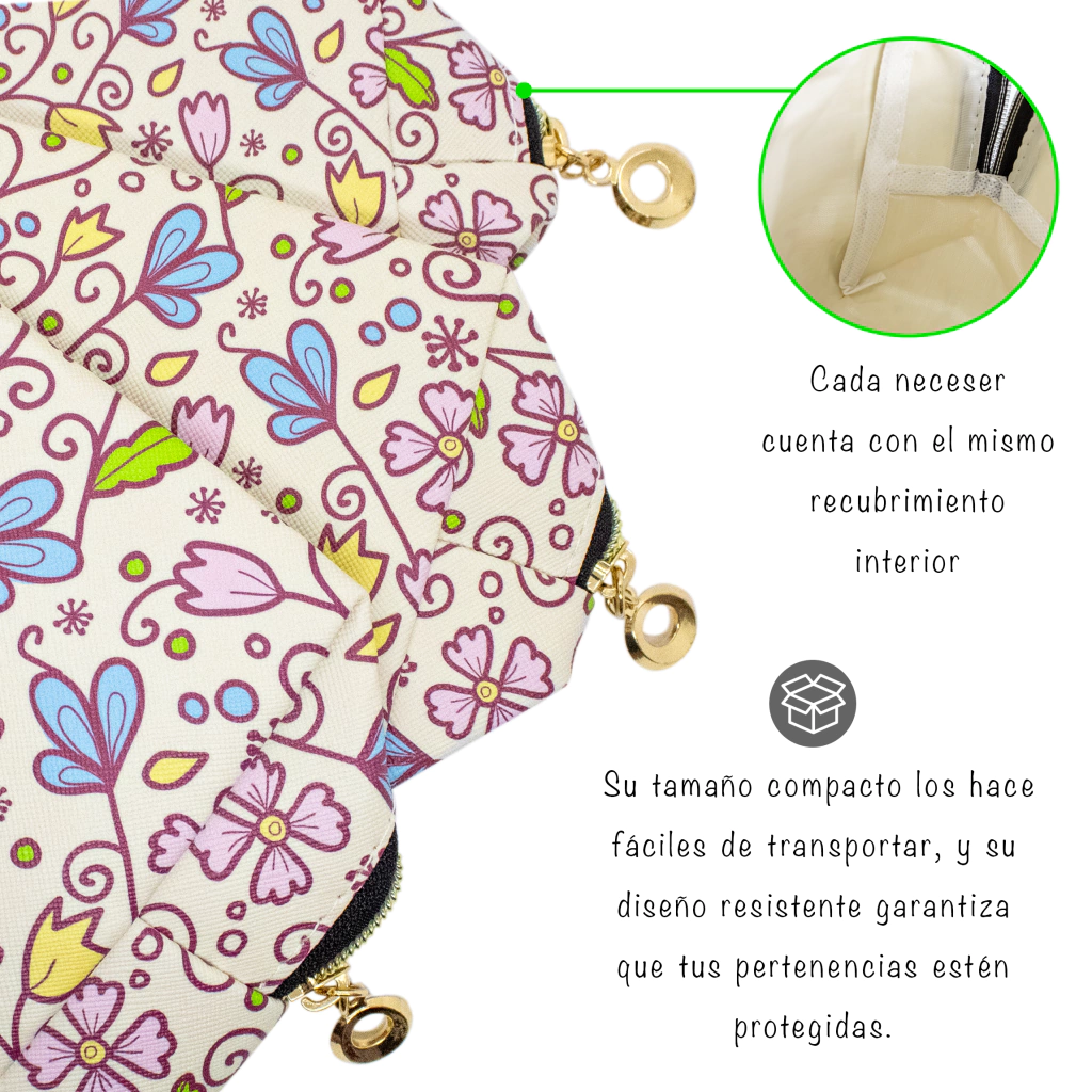 ¡No esperes más para añadir un toque de elegancia y organización a tu vida! Adquiere ahora el Set De Neceser 3 Unidades Rosa Floreado y disfruta de la combinación perfecta entre estilo y practicidad.