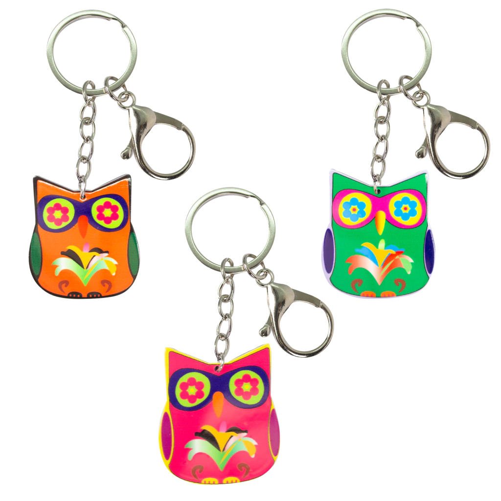 Llaveros Acrílico Buhos - 3 Colores (Paquete de 12 Unidades)