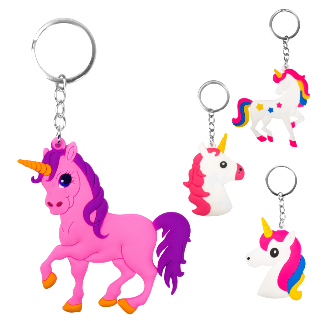 Llaveros de Goma Unicornio Rosa y Lila (Paquete de 12 Unidades)