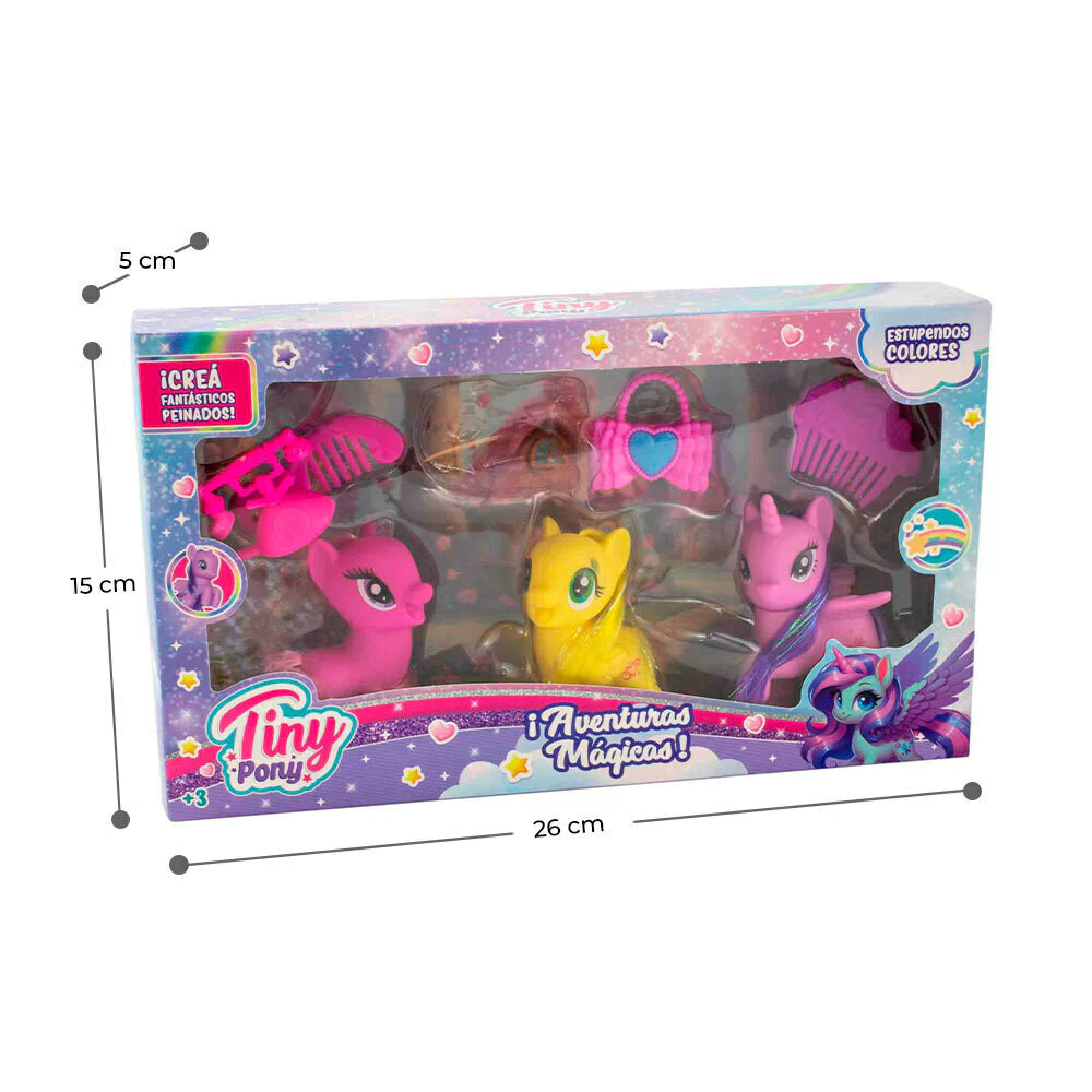 ¡La magia de los ponys llega a tu casa con este set de 3 Tiny Pony's! Perfecto para que los más chicos vivan momentos de pura diversión con estos coloridos y adorables ponys. Cada uno viene con su propio estilo y accesorios, ¡para que puedan disfrutar de un juego lleno de imaginación y creatividad!